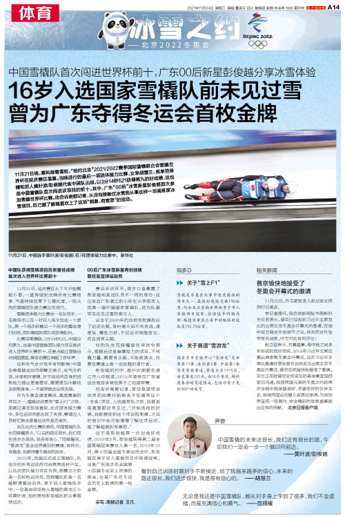 16岁入选国家雪橇队前未见过雪 曾为广东夺得冬运会首枚金牌