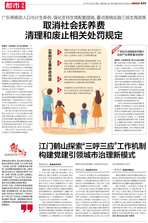 南都讯 记者吴璇 实习生凌景明 《广东省人口与计划生育条例修正案(草案)》11月29日提交省十三届人大常委会第三十七次会议审议。修改内容主要涉及计划生育工作总体思路调整、生育政策和服务措施优化、强
