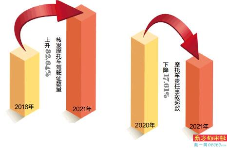 据悉,目前,全省除禁摩限摩的地市外,其余地市均已开展摩托车“带牌销售”工作。2021年以来,全省摩托车注册登记总量为105.67万辆,其中通过“带牌销售”方式办理摩托车登记的总量为51.28万辆,占摩托车注册登记总量的48.53%。广东省摩托车责任事故起数和死亡人数同比分别下降17.61%和34.03%,农村地区、城乡结合部摩托车责任事故起数和死亡人数同比分别下降23.19%和38.21%。