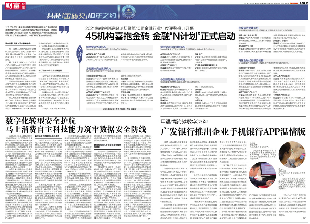 据了解,广发银行企业手机银行适老化版本“温情版”具有“字体更大更简洁,页面重构更易用,智能语音有温度”三个方面的特点。在视觉展示方面,“温情版”字体更大更清晰、页面配色更简洁、常用功能更突出,减轻用户阅读浏览压力、降低误触概率,使用起来更加轻松;在界面友好方面,“温情版”APP根据老年人等特殊群体的心理特征、使用需求、行为习惯,以大数据为基础,从上百项线上服务中筛选出客户使用频率最高的6项,展示在常用功能栏位,同时对账户查询、转账汇款、交易审批、对公理财等界面再次进行适老化改造,提升用户掌控感;在智能辅助方面,对视力有障碍的用户,“温情版”APP提供语音智能搜索、语音智能播报服务。用户可以使用语音进行功能搜索,APP通过精准语义识别实现功能跳转;同时,对于银行公告等文字内容,APP可直接进行语音播报,使每个用户都能享受到有温度、更贴心的智能化移动金融服务。