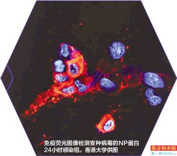 免疫荧光图像检测变种病毒的NP蛋白24小时感染组。 香港大学供图