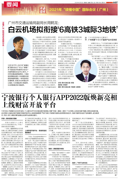 “读懂广州”枢纽经济专题研讨会 12月1日下午,2021年“读懂中国”国际会议(广州)之“读懂广州”枢纽经济专题研讨会在广州越秀国际会议中心举行。广州市交通运输局副局长、二级巡视员周鹤龙表示,白