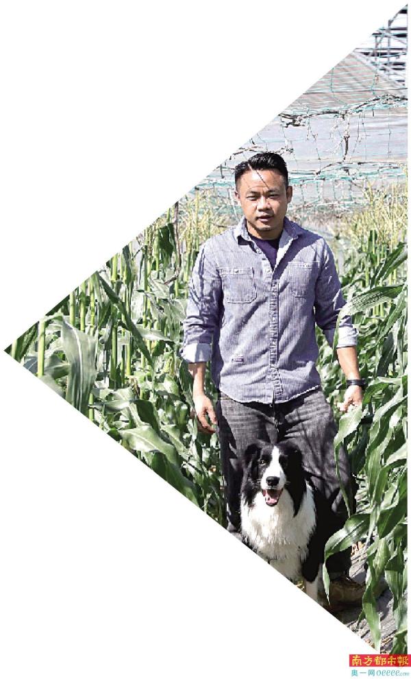 穿过东莞企石镇几座厂房,从一条小路进去就来到“我的农场”,黄惠铭在水果玉米地里摘下一棒玉米品尝甜度。据介绍,这款水果玉米成熟后可直接当水果吃,甜度绝对超乎想象,旁边一片片的阳光玫瑰葡萄,粉红芯火龙果和草莓等,都是他的得意之作。
