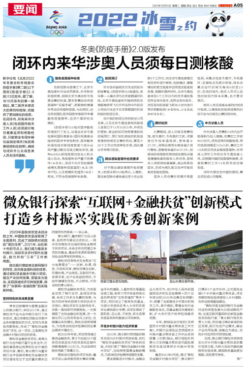 新华社电 《北京2022年冬奥会和冬残奥会防疫手册》第二版(以下简称《防疫手册》2.0版)13日发布。据了解,与10月发布的第一版相比,第二版并未修改大的原则和框架,但提供了更加细化的信息。 在