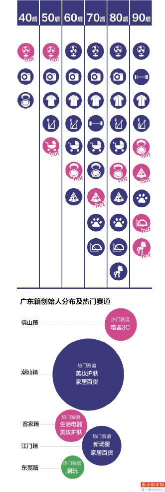 广东籍创始人占比最多,有18位。其中潮汕籍10个,客家籍、佛山各2个,江门籍3个,东莞籍一个。潮汕籍创始人主要在美妆护肤、家居百货赛道,佛山籍创始人热衷于电器3C,江门籍创始人的热门赛道是新场景、家居百货。