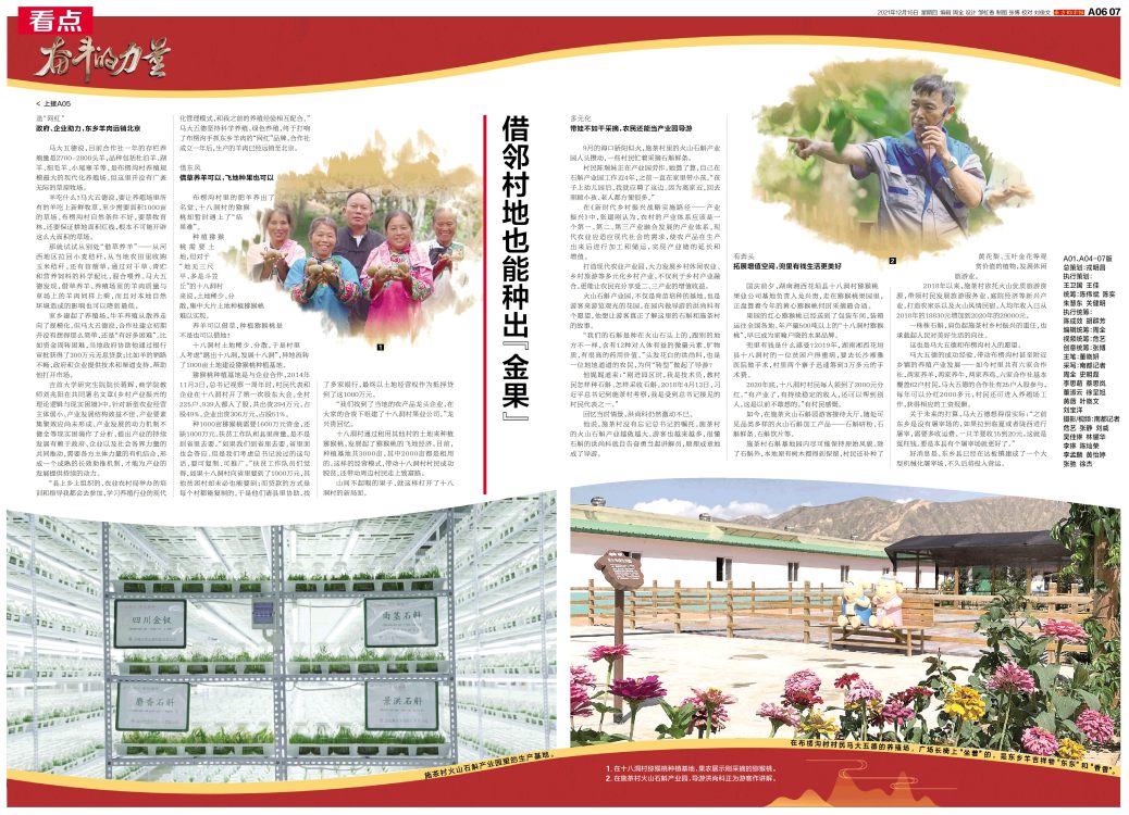 在十八洞村猕猴桃种植基地,果农展示刚采摘的猕猴桃。 在施茶村火山石斛产业园,导游洪尚科正为游客作讲解。 施茶村火山石斛产业园里的生产基地。