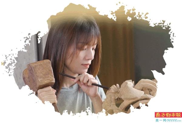 她便是木雕手艺人陈嘉。身为“90后”的陈嘉出生在一个木雕世家,爷爷陈舜羌是国家工艺美术大师,是潮州木雕代表作“龙虾蟹篓”的原创者之一。父亲陈培希是省级高级工艺美术师,在陈培希的鼓励下,陈嘉14岁起便学习潮州木雕。