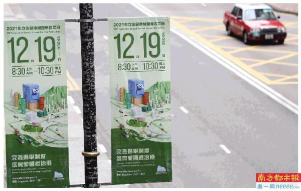 香港举行完善选举制度后首次立法会选举,香港街头的海报。新华社发