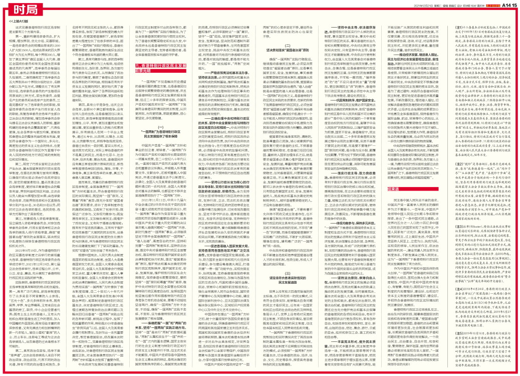 (2021年12月) 中华人民共和国国务院新闻办公室 新华社电 国务院新闻办公室20日发表《“一国两制”下香港的民主发展》白皮书。全文如下:
