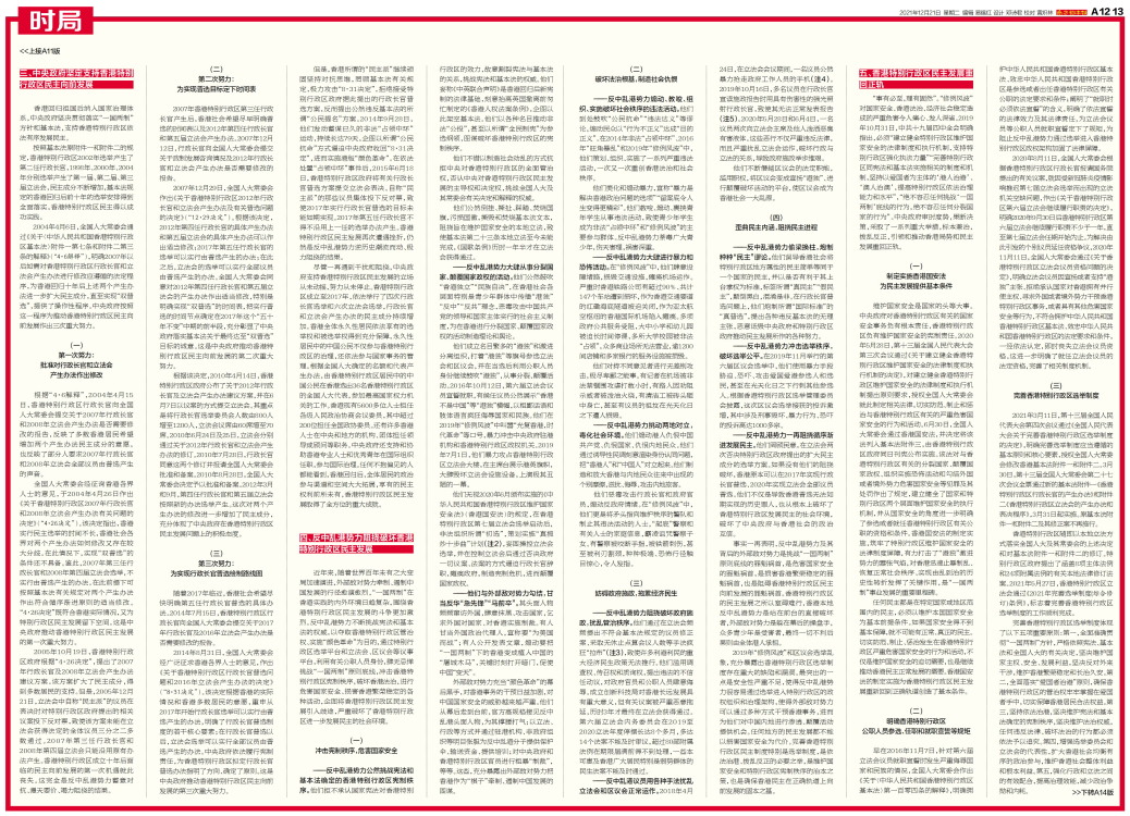 (2021年12月) 中华人民共和国国务院新闻办公室 新华社电 国务院新闻办公室20日发表《“一国两制”下香港的民主发展》白皮书。全文如下: