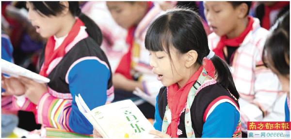民族学校应使用普通话教育教学。图为云南景洪基诺山基诺族乡民族小学的学生在上音乐课。 新华社发