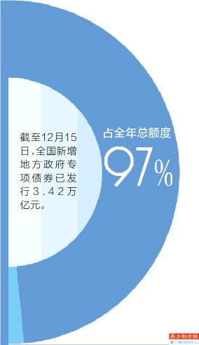 政策吹风会首先对2021年地方政府专项债券的发行情况作出通报。财政部副部长许宏才介绍,截至12月15日,全国新增地方政府专项债券已发行3.42万亿元,占全年总额度的97%,全年发行工作基本完成。