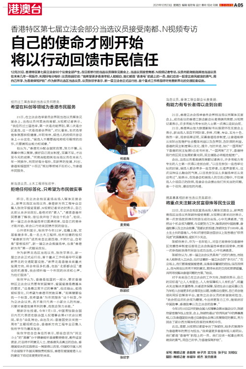 12月20日,香港特区第七届立法会90个议席全部产生。在日前举行的当选议员媒体见面会上,当选议员接受南都、N视频记者专访。议员何君尧勉励其他当选议员在未来几年一同振作,利用好每分每秒;议员陈颖欣说