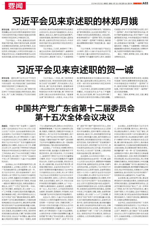 南都讯 中国共产党广东省第十二届委员会第十五次全体会议于2021年12月21日至22日在广州召开。全会由省委常委会主持。全会坚持以习近平新时代中国特色社会主义思想为指导,深入学习贯彻党的十九届六中