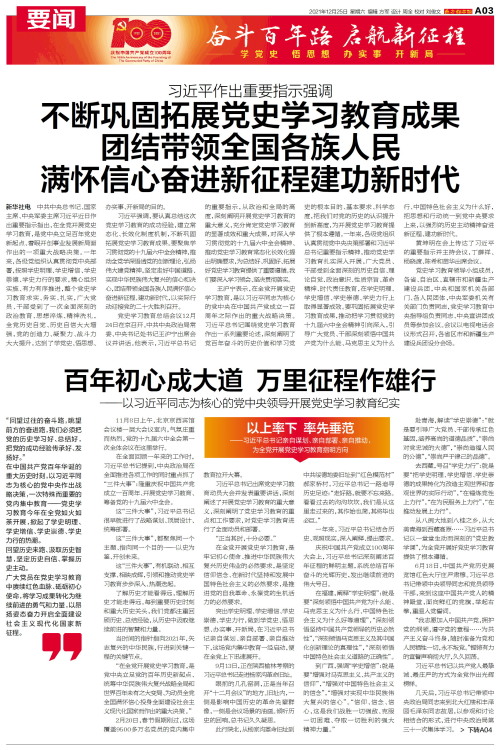 “回望过往的奋斗路,眺望前方的奋进路,我们必须把党的历史学习好、总结好,把党的成功经验传承好、发扬好。” 在中国共产党百年华诞的重大历史时刻,以习近平同志为核心的党中央作出战略决策,一次特殊而重