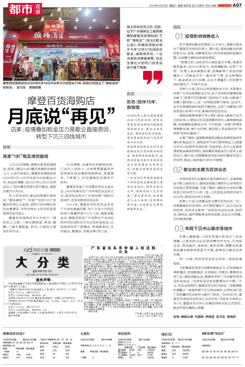 继王府井百货之后,日前,位于广州海珠区江南西商圈的摩登百货海购店(下称“海购店”)发出《歇业公告》,所属百货部分将于今年12月31日闭店后歇业。消息传开后,一众当地街坊唏嘘感慨,往日生意红火的热门