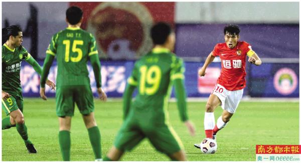 郑智首发登场60分钟,助攻邓涵文破门,广州队1比0取胜北京国安,四轮不败。下场后,郑智又在技术区指挥比赛(小图)。 南都记者 黎湛均 摄