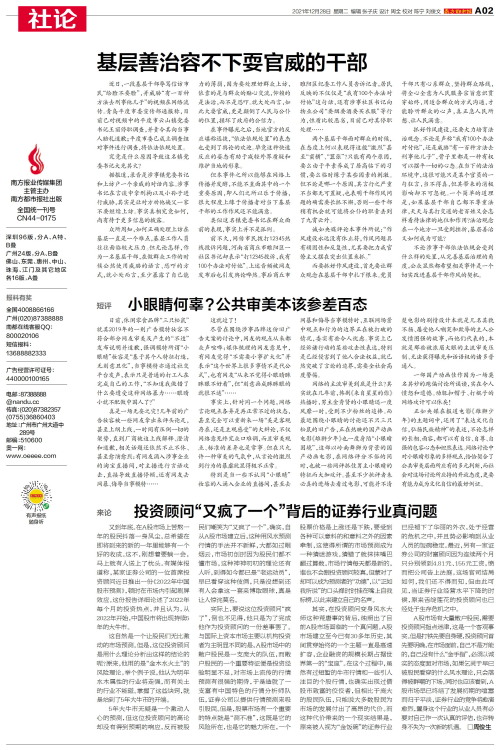 A股市场有大量散户股民,需要投资顾问指点迷津,这是一个客观事实。但是打铁先要自身硬,投资顾问首先要明确,在市场面前,自己不是万能的,自己没有什么“金手指”,必须以诚实的态度面对市场,如果乞灵于早已被股民看穿的什么风水理论,只会落得被群嘲的下场。同时也应该看到,A股市场早已终结了发展初期的喧嚣而归于平淡,证券行业的竞争将愈演愈烈,置身这个行业的从业人员有必要对自己作一次认真的评估,也许转身不失为一次新的机遇。 □周俊生