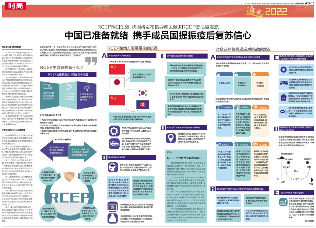 2022年的第一天,区域全面经济伙伴关系协定(RCEP)将正式生效,全球人口最多、经贸规模最大、最具发展潜力的自由贸易区将正式启航。RCEP生效将带来哪些机遇?如何抓住机遇?昨日,商务部有关负责人