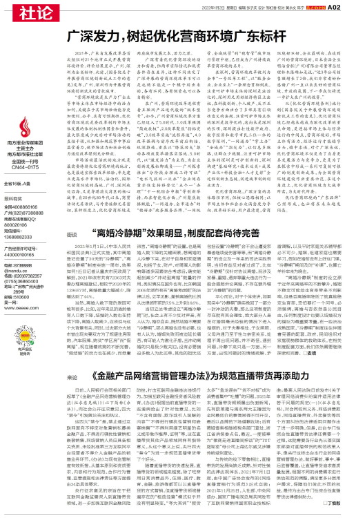 2021年,广东省发展改革委首次组织对21个地市正式开展营商环境评价。评价结果显示,广州、深圳为全省标杆。此前,《国务院关于开展营商环境创新试点工作的意见》发布,广州、深圳作为开展营商环境创新试点