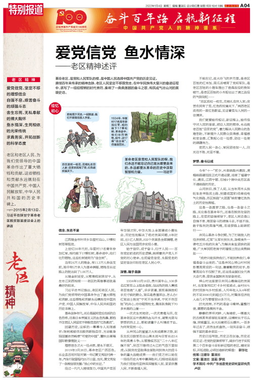 老区精神爱党信党、坚定不移的理想信念自强不息、艰苦奋斗的顽强斗志舍生忘死、无私奉献的博大胸怀鱼水情深、生死相依的光荣传统求真务实、开拓创新的科学态度老区和老区人民,为我们党领导的中国革命作出了重大
