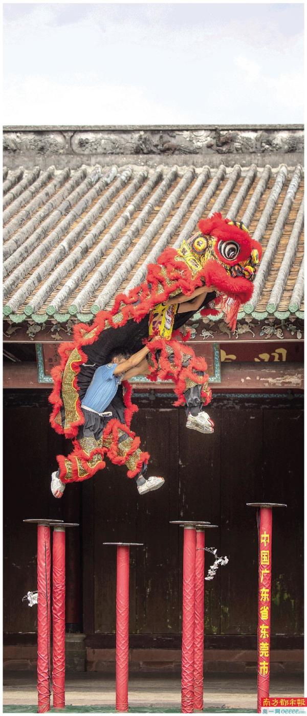广东东莞石排镇中坑村的明德醒狮团。 南都资料图