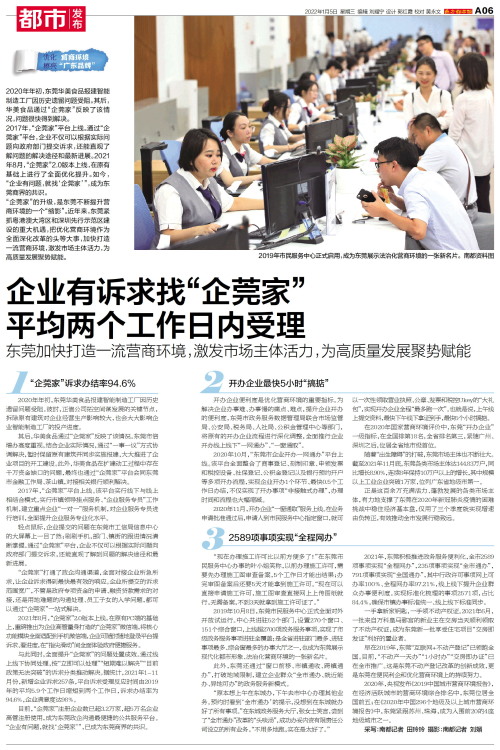 企业有诉求找“企莞家” 平均两个工作日内受理