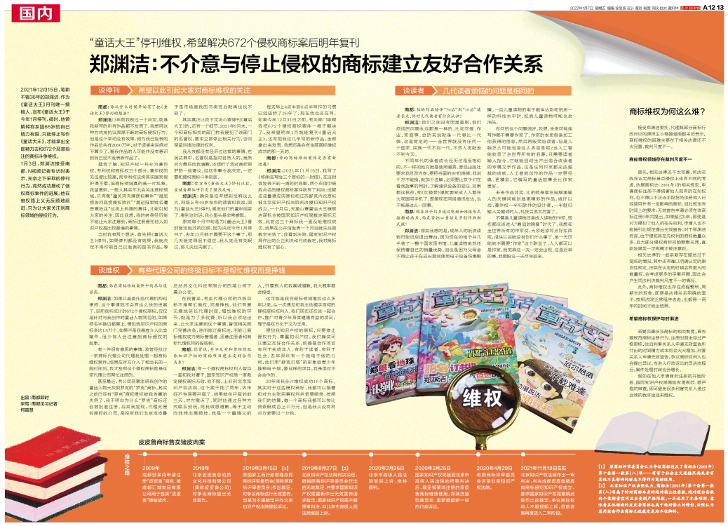 郑渊洁:不介意与停止侵权的商标建立友好合作关系
