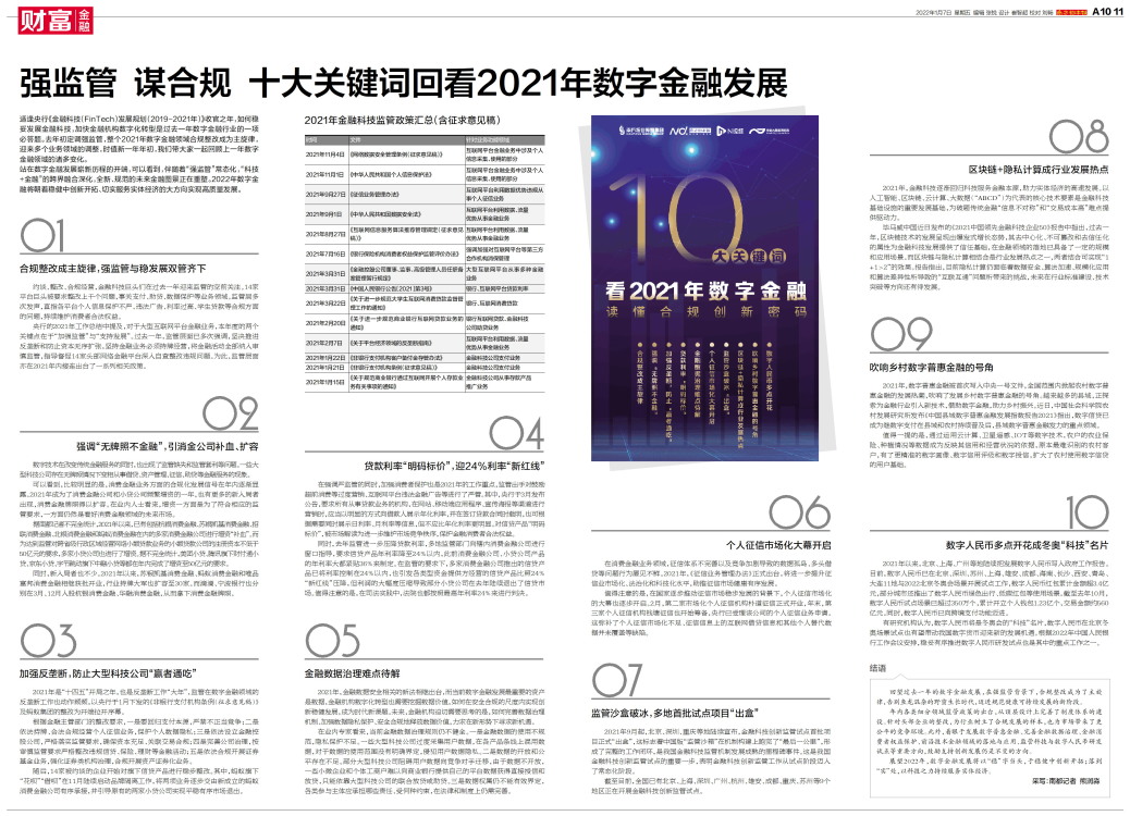 强监管 谋合规 十大关键词回看2021年数字金融发展