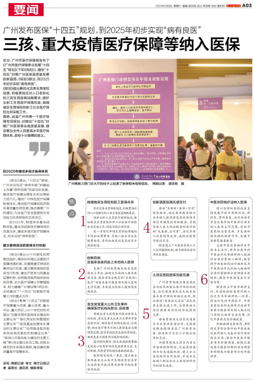 近日,广州市医疗保障局发布了《广州市医疗保障事业发展“十四五”规划》(下称《规划》),描绘“十四五”时期广州医保高质量发展的新蓝图。《规划》提出,到2025年初步实现“病有良医”。 《规划》提出