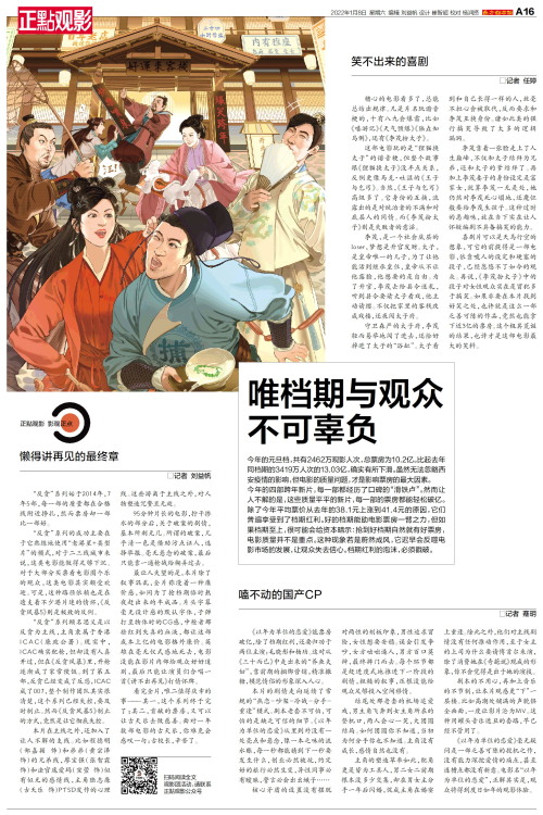 正點观影 影观正点 今年的元旦档,共有2462万观影人次,总票房为10.2亿。比起去年同档期的3419万人次的13.03亿,确实有所下滑。虽然无法忽略西安疫情的影响,但电影的质量问题,才是影响票