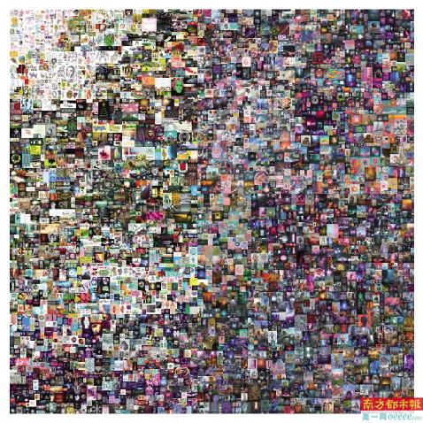 2021年3月11日,佳士得史上首次以NFT形式拍卖了数字艺术家Beeple的NFT作品《每一天:前5000天(Everydays:The First 5000 Days)》(如下图),底价100美元,最终以6934.6万美元成交,一举跃升至在世艺术家作品成交价的第三高,并让NFT这一概念破圈而出,在全球范围内掀起了NFT加密艺术的热浪。