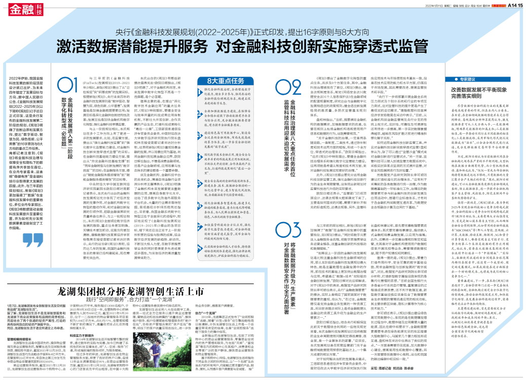 2022年伊始,我国金融科技发展的新阶段顶层设计就已出炉,为未来四年锚定了发展目标与方向。据中国人民银行公告,《金融科技发展规划(2022-2025年)》(以下简称《规划》)已于近日正式印发,这是