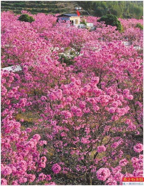 江门新会区大泽镇莲塘村的绿美生态园,紫花风铃木正在怒放,空气中弥漫着浪漫气息。 南都拍客 陈美玲 摄