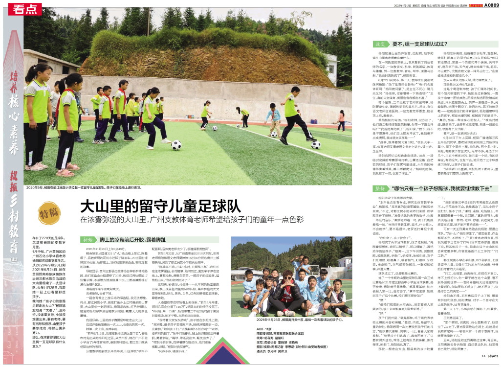 存在了270天的足球队,沉淀在杨阳的支教岁月里。 1月中旬,广州黄埔区的广州石化小学体育老师杨阳即将结束支教生活。从2020年9月28日到2021年6月24日,她在贵州黔南布依族苗族自治州三都水