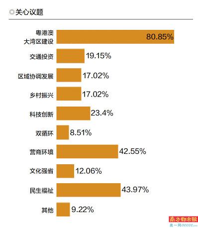 而与大湾区建设相关联的“交通投资”也获得了较高的关注度,有19.15%的受访者最关心这一话题。