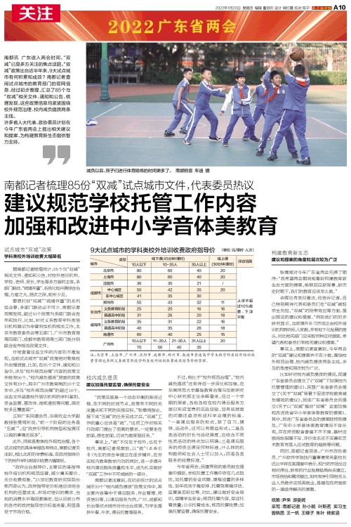 南都讯 广东进入两会时间,“双减”已是多方关注的焦点话题。“双减”政策出台近半年来,9大试点城市有何积累和成效?南都记者查阅试点城市的教育部门的官网信息,经过初步整理,汇总了85个与“双减”相关文
