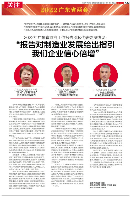 “双区”发展、工业互联网、智能制造、教育“双减”……1月20日,广东省代省长王伟中在省十三届人大五次会议上所作的政府工作报告引起人大代表、政协委员热议。有代表指出,广东在基础教育上的投入增加,是对
