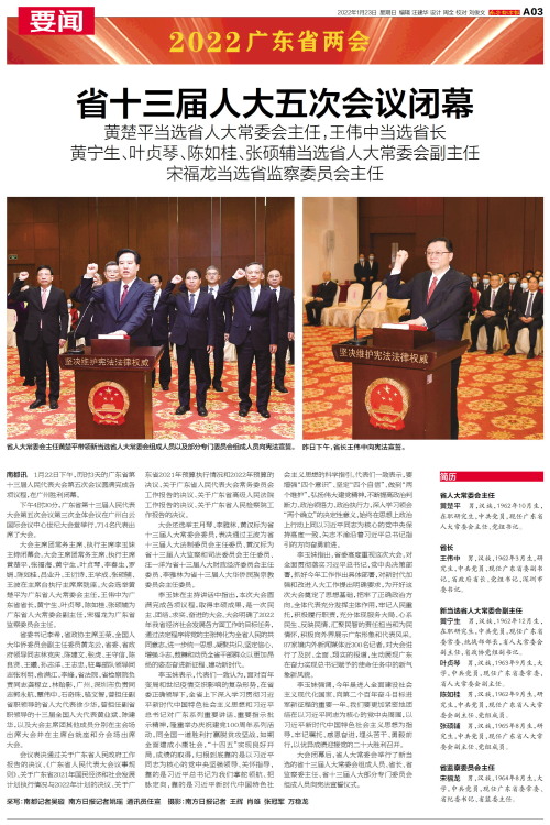 南都讯 1月22日下午,历时3天的广东省第十三届人民代表大会第五次会议圆满完成各项议程,在广州胜利闭幕。
