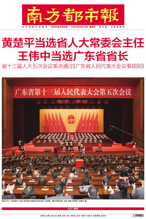 黄楚平当选省人大常委会主任 王伟中当选广东省省长