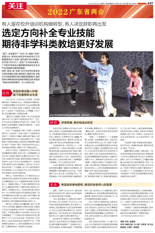“留下,还是离开?”去年7月,国家“双减”政策出台,教培机构的学科类老师们几乎都要面临这个选择。国内课外培训教辅人员约有1000万人,这是广州市政协委员、广州软件学院执行董事兼常务副校长迟云平在其