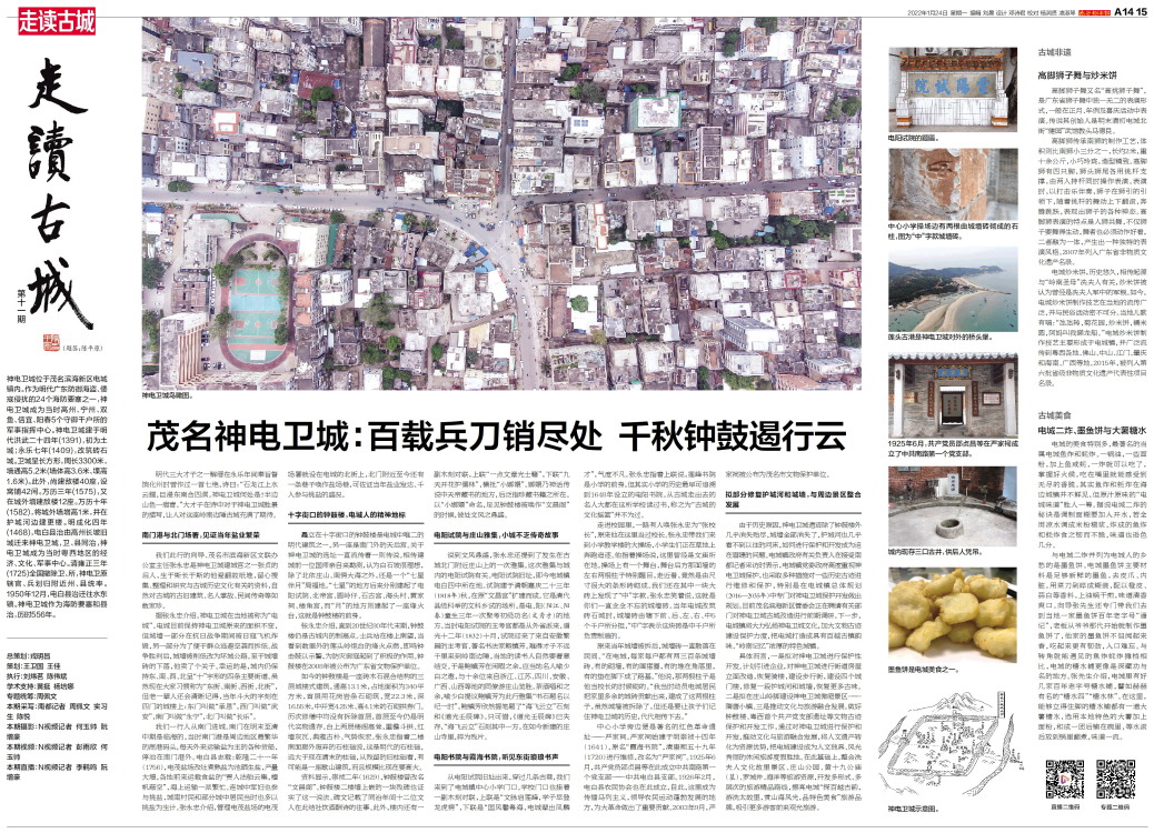 第十一期 (题签:陈平原) 神电卫城位于茂名滨海新区电城镇内。作为明代广东防御海盗、倭寇侵扰的24个海防要塞之一,神电卫城成为当时高州、宁州、双鱼、信宜、阳春5个守御千户所的军事指挥中心。神电