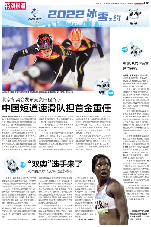 聚焦 南都讯 记者陶新蕾 上周,经国际奥委会批准,北京冬奥组委发布北京冬奥会竞赛日程终版,中国冰雪项目王牌之师短道速滑队肩负起了为中国代表团冲击首金的重任。 北京冬奥会正式比赛日从2月5日开始