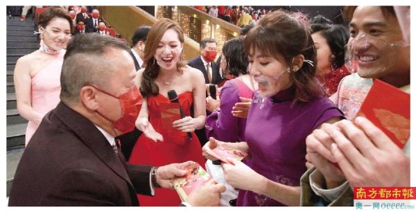 在2021年“金牛献瑞贺新年”上,曾志伟大派红包。