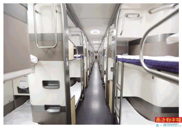 头尾两节列车没有设二等座车,除餐车外,均为软卧车厢,总定员880人,比普通动卧列车席位增加了1/3还多,有助缓解高峰期运力紧张。