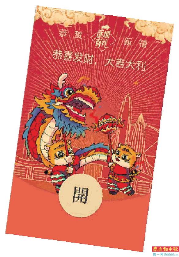 在此次活动中送出的红包封面结合了深圳城市特质和春节元素,将老虎卡通化,并将“圳”字巧妙嵌入老虎额纹之中。背景则选取深圳市民中心、平安大厦、春笋等地标建筑,以潮流生动的“深圳虎”形象代表深圳的奋斗者们。