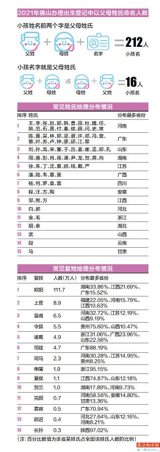南都记者留意到,广东佛山市公安局1月1日曾公布佛山地区2021年新生儿取名热门名字。有趣的是,在全国新生儿使用最多的名字前十中,男生的“宇轩、浩然”以及女生的“语桐、雨桐”同样是佛山地区2021年新生儿取名热门名字的前十。