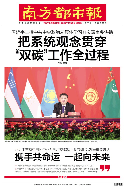 ◎中国同中亚五国30年合作的成功密码,在于双方始终相互尊重、睦邻友好、同舟共济、互利共赢。 ◎中国古人云:“道虽迩,不行不至;事虽小,不为不成。”让我们从六国人民共同福祉出发,赓续友谊,推进合作