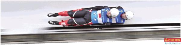去年11月,彭俊越(右)和黄叶波在“相约北京”国际雪橇联合会雪橇世界杯比赛中。