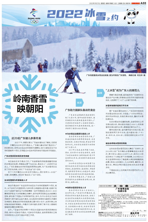 广东高度重视冰雪运动发展,图为市民在广东滑雪。 南都记者 何玉帅 摄 发布 近20名广东健儿参赛冬奥 26日下午,南都记者从广东省冰雪协